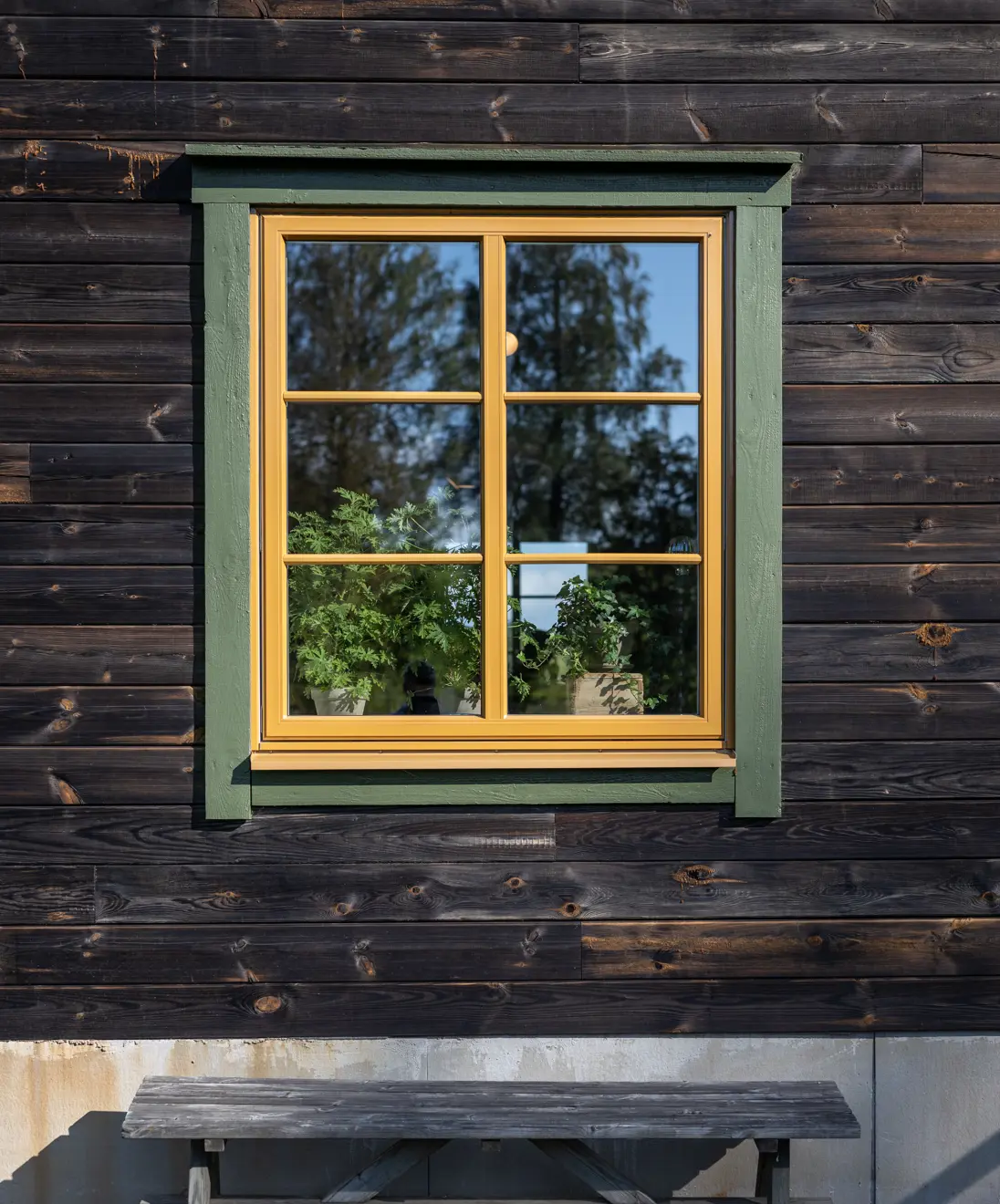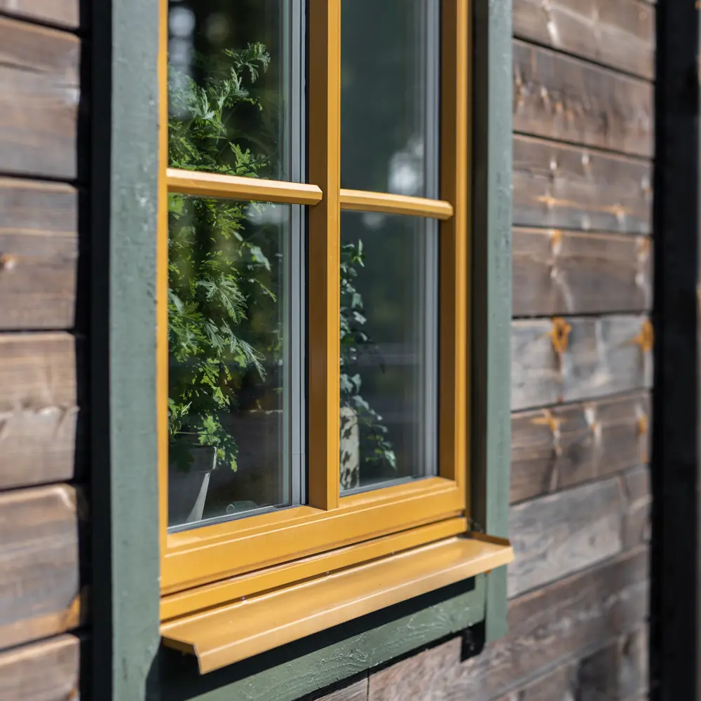 Till anläggningens vackra timmerhus fick vi leverera våra vridfönster, designade och målade i ockragult för att passa till huset, men även naturen runt omkring.